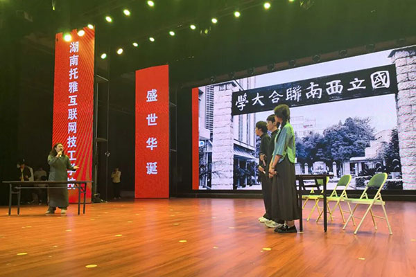 由同学自编自导的情景剧《恰同学少年》、《烽火中的青春》,生动再现了烽火岁月中青年学子在求学路上的拼搏与成长,感人至深的情节引发了全场师生的强烈共鸣。