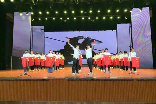 陈金凤、李恩欣、聂小江带来的诗朗诵《诗颂风华》深情款款,表达了师生对祖国山河的挚爱。