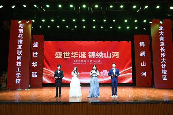 歌声落下,四位精神饱满的学生主持人迈着自信的步伐登上舞台。他们以铿锵有力的声音,隆重介绍了出席本次汇演的领导与嘉宾,并深情阐述了本场汇演的时代意义。他们代表全体同学,表达了新时代青年学子对祖国繁荣昌盛的美好祝愿,为整场晚会奠定了庄重而热烈的基调。