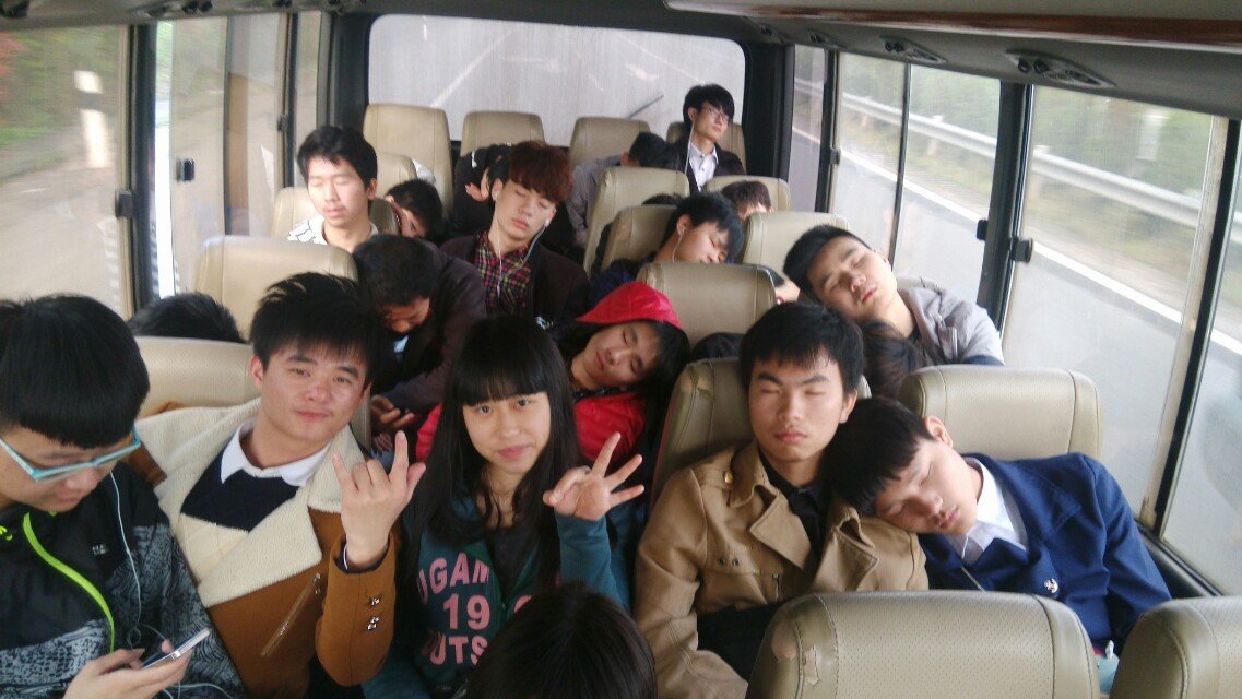 在 车上,我们都有说有笑,脸上都透露着那兴奋的心情,似乎想要好好放松自己一次,也许是学习压力大了,也许是想趁着这美好的春光好好的来一次旅行。在今天我 们都放下了那一本本厚重的课本,离开了面对电脑的视线,尽情的去体会春天的魅力。在车上我们拍了一张合影,小伙伴们都笑开了花。